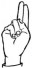 На ћирилици написано МИЛАН КОСИЋ састоји се из 10 слова [?]. Исписано ћириличном једноручном азбуком за глувонеме: